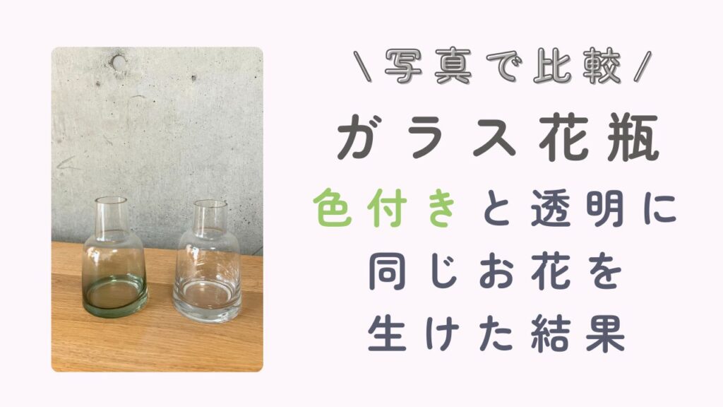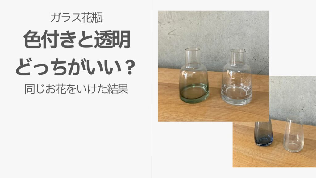 【写真で比較】ガラス花瓶の透明と色付きを同じお花を生けた結果