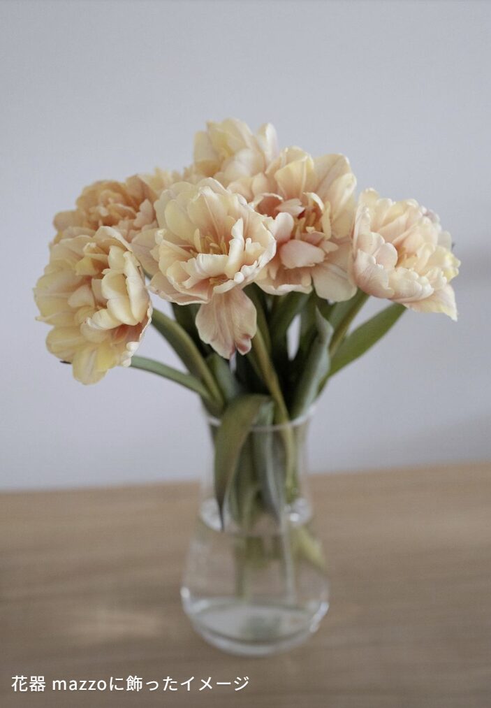 花瓶の高さが20㎝なので、今回のチューリップに限らず、FLOWERで扱う他のお花(35cm〜45cmが多い)でもバランスよく生けられそうです。