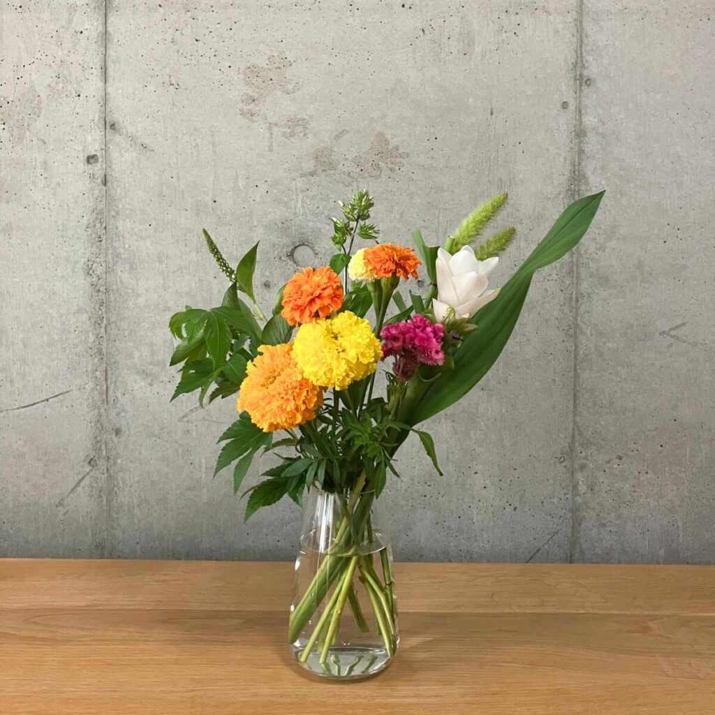 色が付いている花瓶はお花の雰囲気や色によっては合わない場面も出てくるのですが、この花瓶は主張しすぎず、お花を引き立ててくれます。