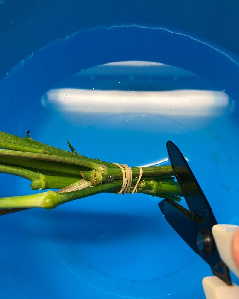 私が行った作業は、保水ゼリーを洗い流し、水を吸い上げやすくするために茎の先を少し切るだけです。