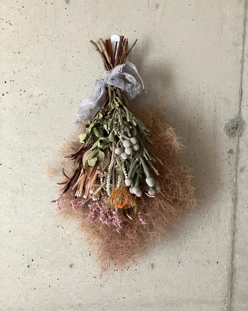 先日、スモークツリーとネイティブフラワーのスワッグを作りました。