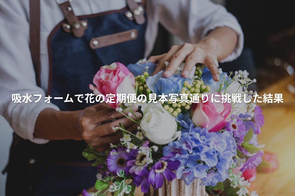 今回は花の定期便のお花を吸水フォームで見本通りに生ける過程をレポートしました。